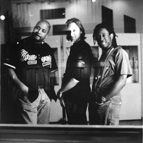 With the late & amazing JOE SAMPLE & the late wonderful poet & playwrite THOMAS GRIMES backstage at the Blue Note New York (2000).