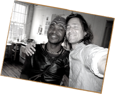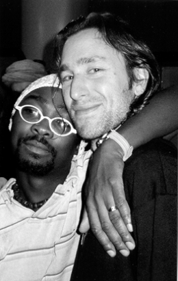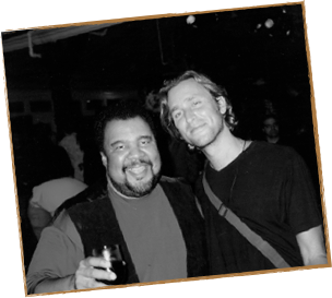 With Jamaican poet & visual artist JIMMY RAGE, after our performance with Black Mud Sound, also featuring drummer DAVID FALL, bassist ZAF ZAPHA (2002).